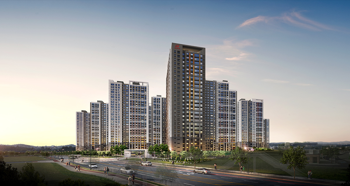 - ※ 상기조감도는 소비자의 이해를 돕기 위해 제작된 CG컷으로 측면 그래픽, 문양 및 외부색채, 단지조경, 세부식재, 외관 디테일 등은 실제 시공 시 세부계획이 변경될 수 있습니다.